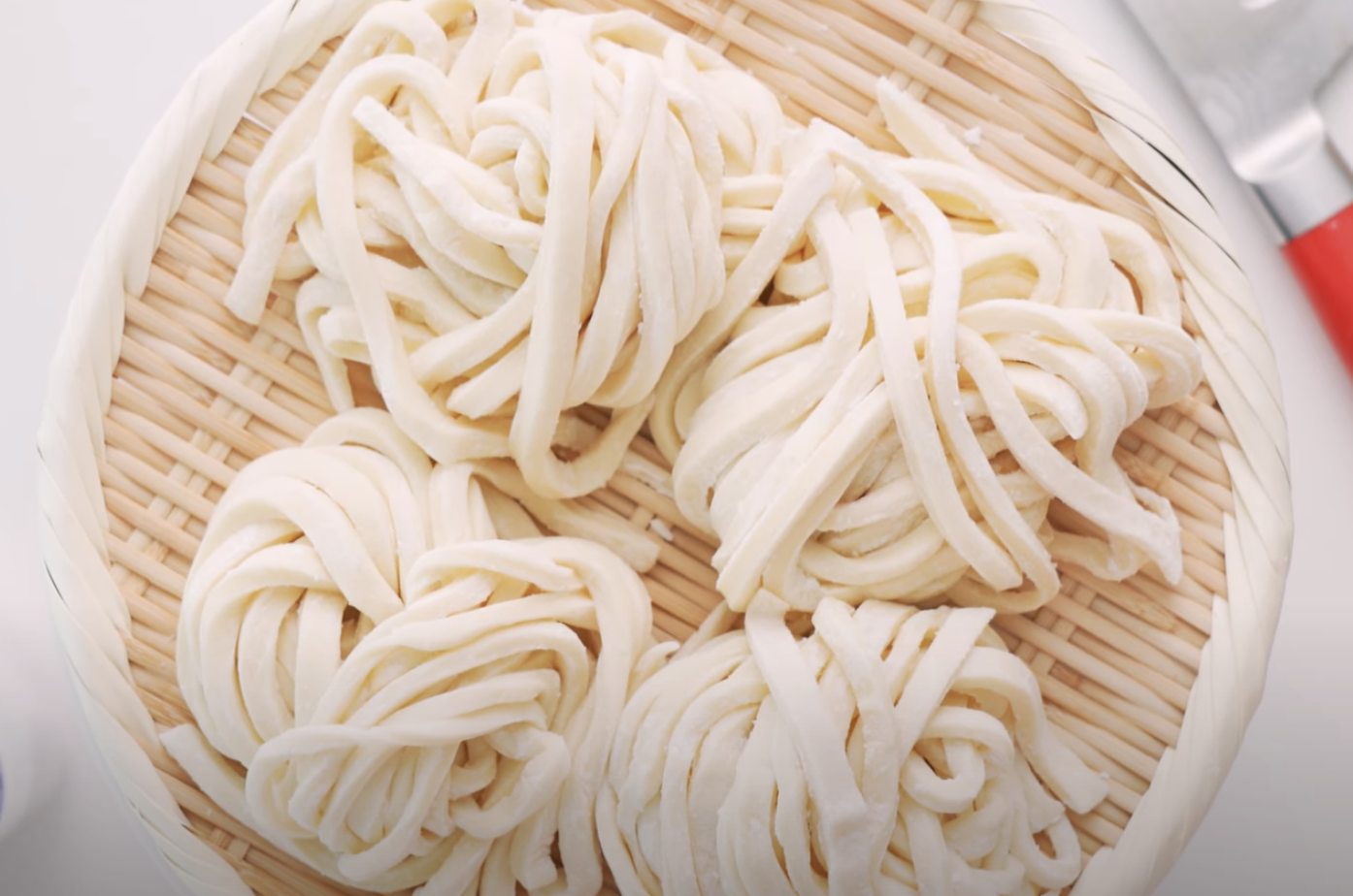 Udon 手打ちうどん (Noodles fatti a mano) – Pasta fresca giapponese, dalla consistenza elastica e setosa, che richiede una lavorazione particolare: la tradizione vuole che l’impasto venga addirittura “pestato” con i piedi, avvolto in un panno, per ottenere la giusta elasticità.